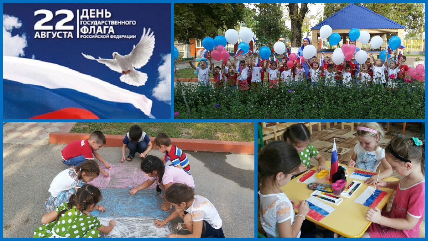 22.08.201622 августа отмечают День Государственного флага России. В нашем детском саду прошли мероприятия, приуроченные этому празднику. Их главная цель — рассказать воспитанникам историю праздника, важность и значение государственных символов. Во всех группах прошли тематические занятия, на которых дети узнали, что такое государственные символы, почему у всех государств мира они разные. Ребята познакомились с историей возникновения флага, определили символическое значение цветов флага России.