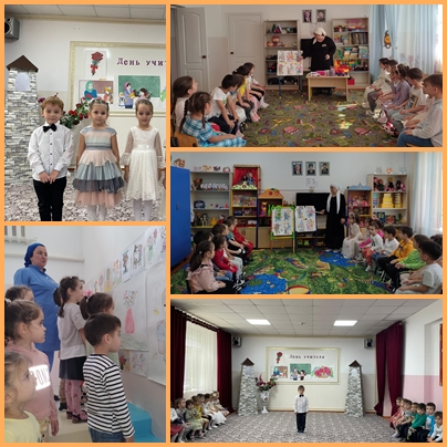 С целью подчеркнуть значимую роль учителя в жизни общества в нашем детском саду были проведены мероприятия, посвященные Дню учителя. Дети посвятили стихотворения, песни людям этой профессии. Также была организована выставка поздравительных открыток и рисунков, сделанных руками воспитанников и их родителей.